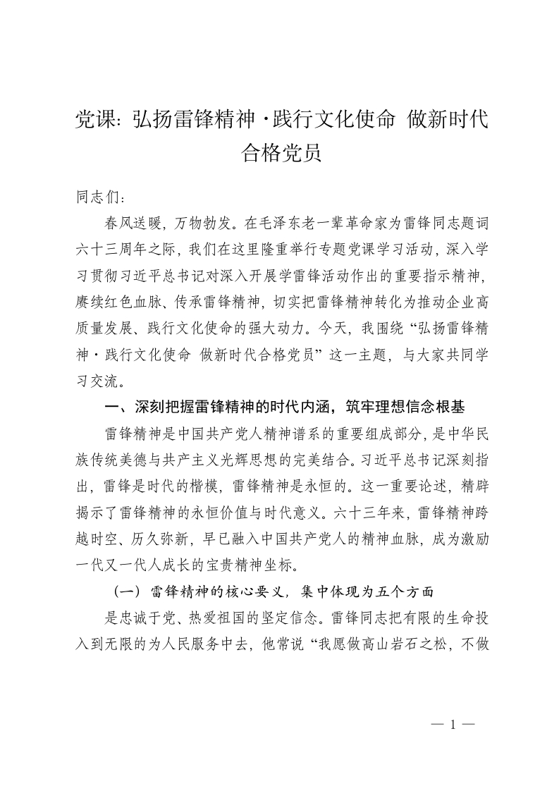 党课:弘扬雷锋精神・践行文化使命 做新时代合格党员