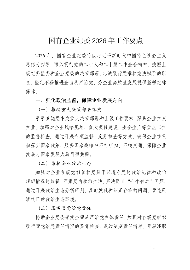 首页公文大全工作要点国有企业纪委 2026年工作要点