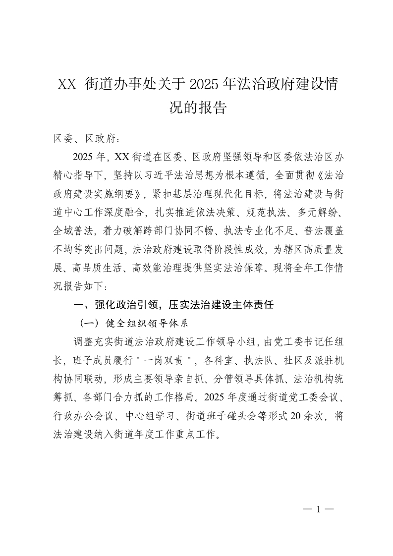 XX 街道办事处关于2025年法治政府建设情况的报告