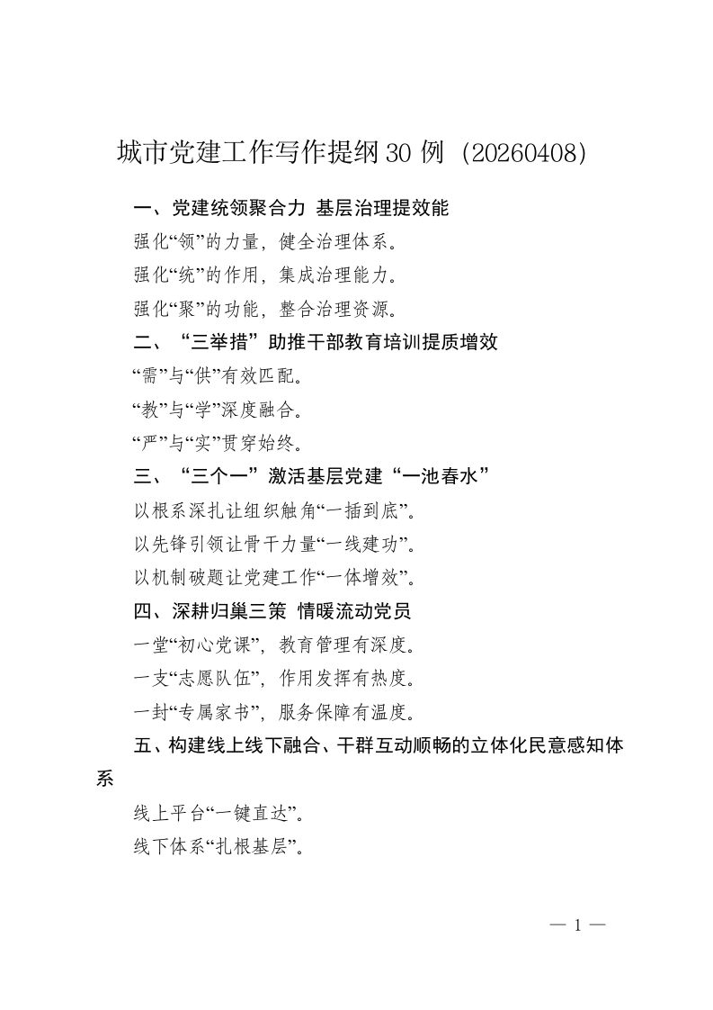 首页写作提升写作提纲城市党建工作写作提纲30例(20260408)