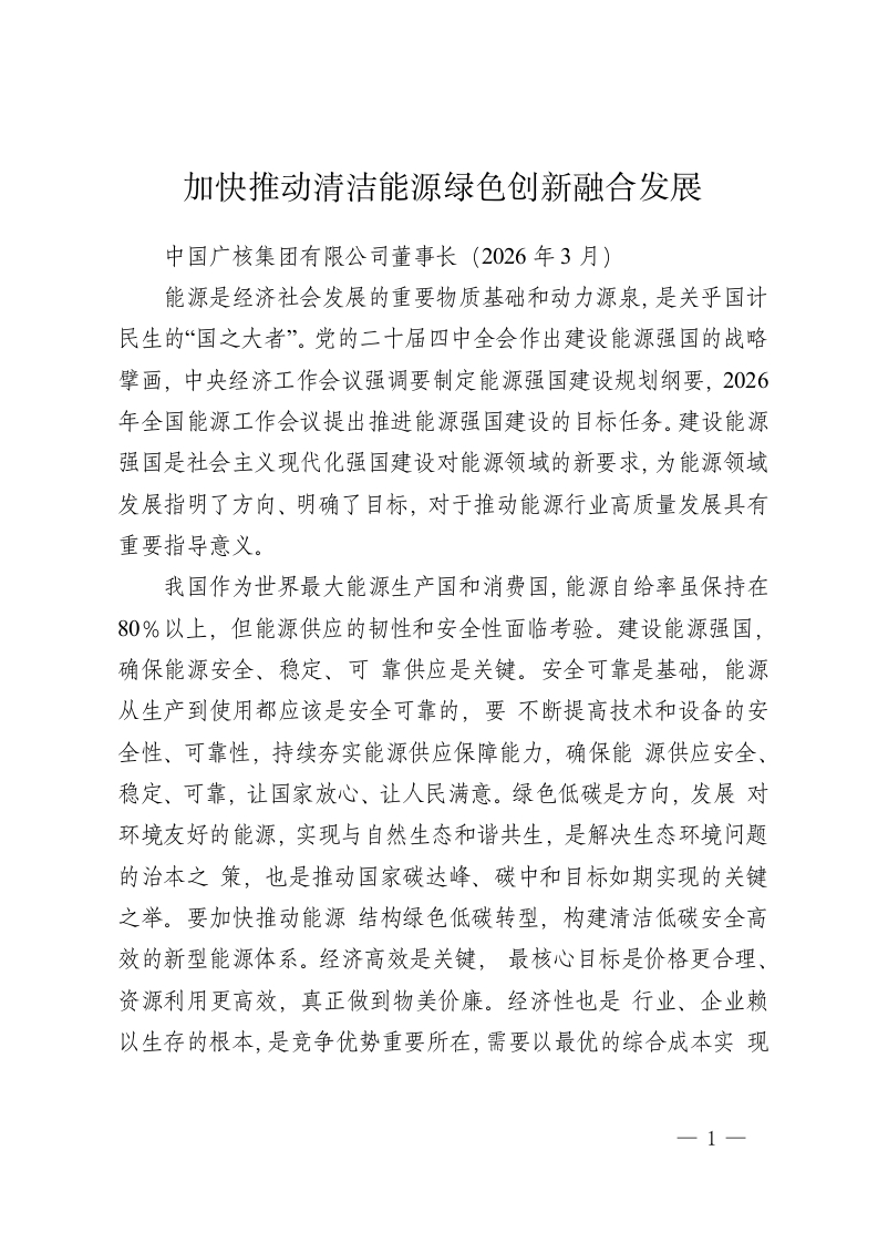 加快推动清洁能源绿色创新融合发展
