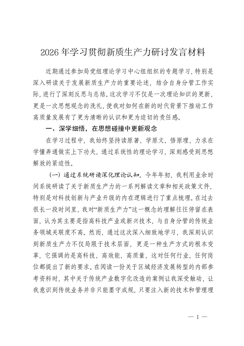 首页公文大全讲话发言2026年学习贯彻新质生产力研讨发言材料