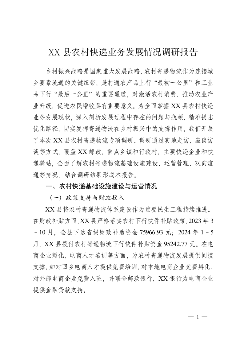XX县农村快递业务发展情况调研报告