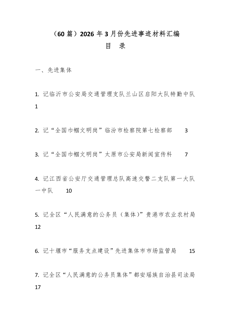(60篇)2026年3月份先进事迹材料汇编