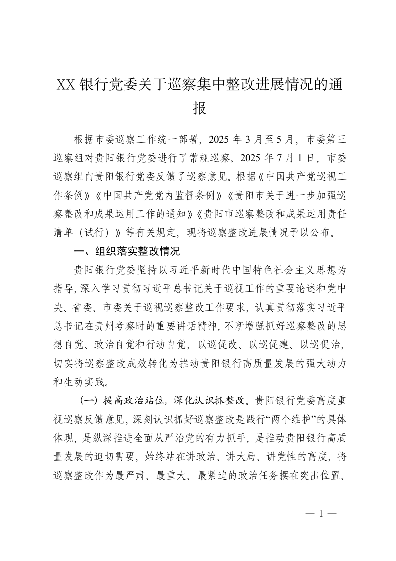首页公文大全工作汇报XX银行党委关于巡察集中整改进展情况的通报