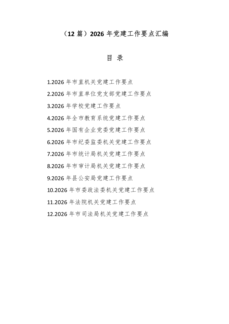 (12篇)2026年党建工作要点汇编