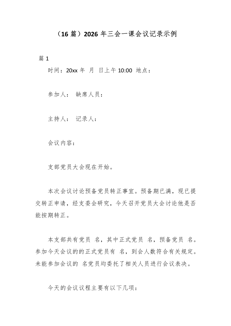 首页公文大全合集汇编(16篇)2026年三会一课会议记录示例