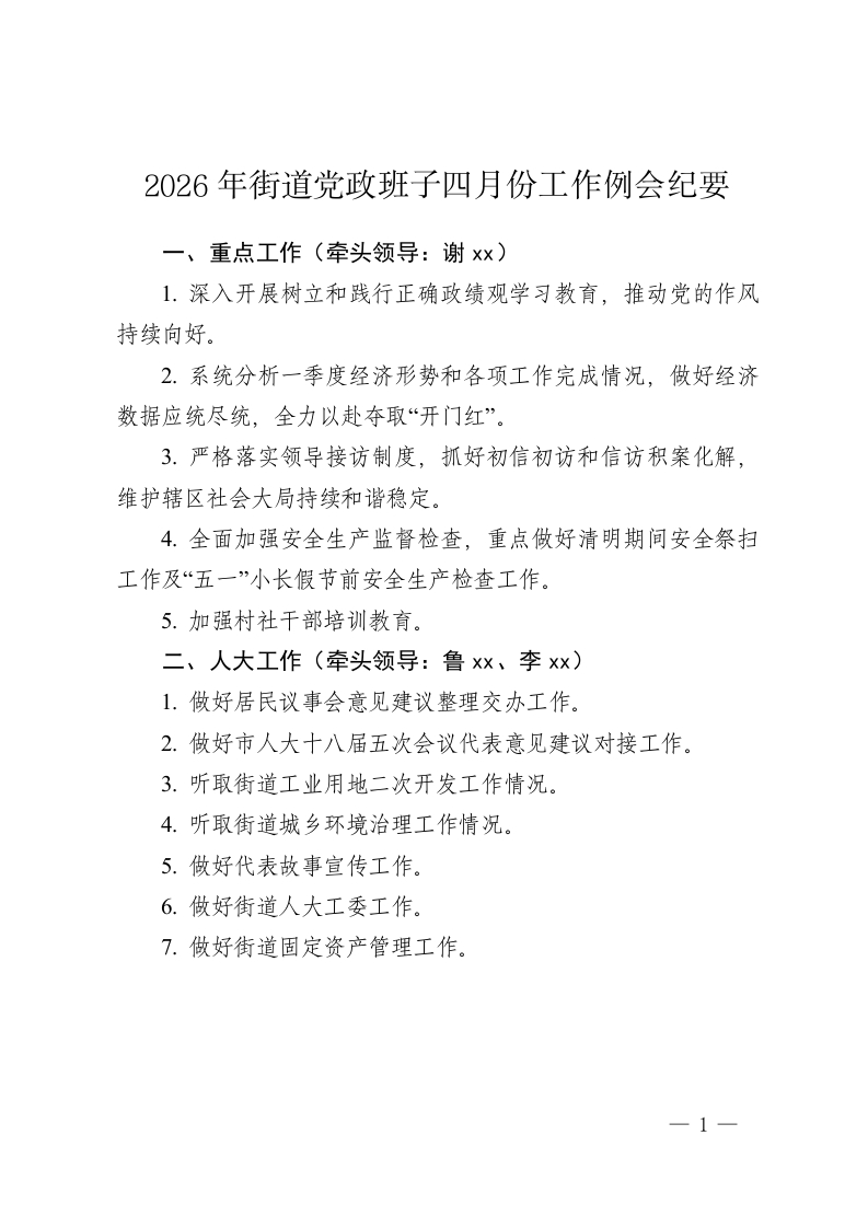 2026年街道党政班子四月份工作例会纪要