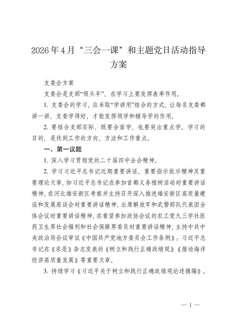 首页公文大全计划方案2026年4月“三会一课”和主题党日活动指导方案