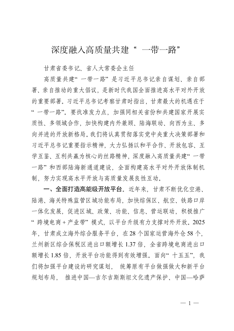 深度融入高质量共建“ 一带一路”