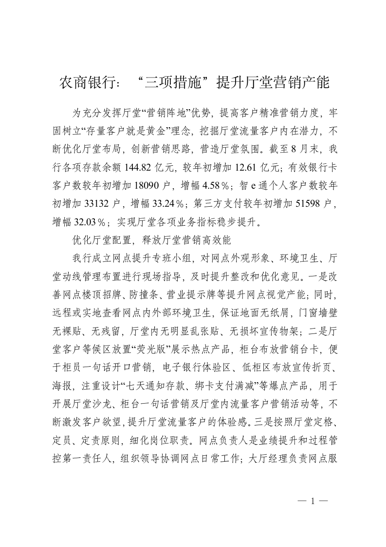 首页公文大全工作汇报农商银行:“三项措施”提升厅堂营销产能