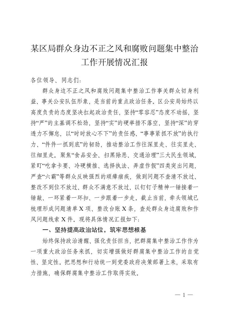 首页公文大全工作汇报某区局群众身边不正之风和腐败问题集中整治工作开展情况汇报