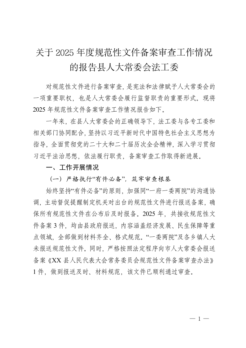 关于2025年度规范性文件备案审查工作情况的报告县人大常委会法工委