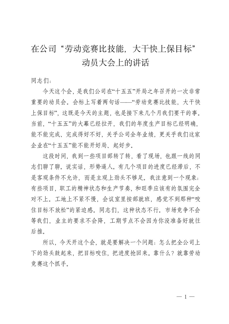 在公司“劳动竞赛比技能,大干快上保目标”动员大会上的讲话