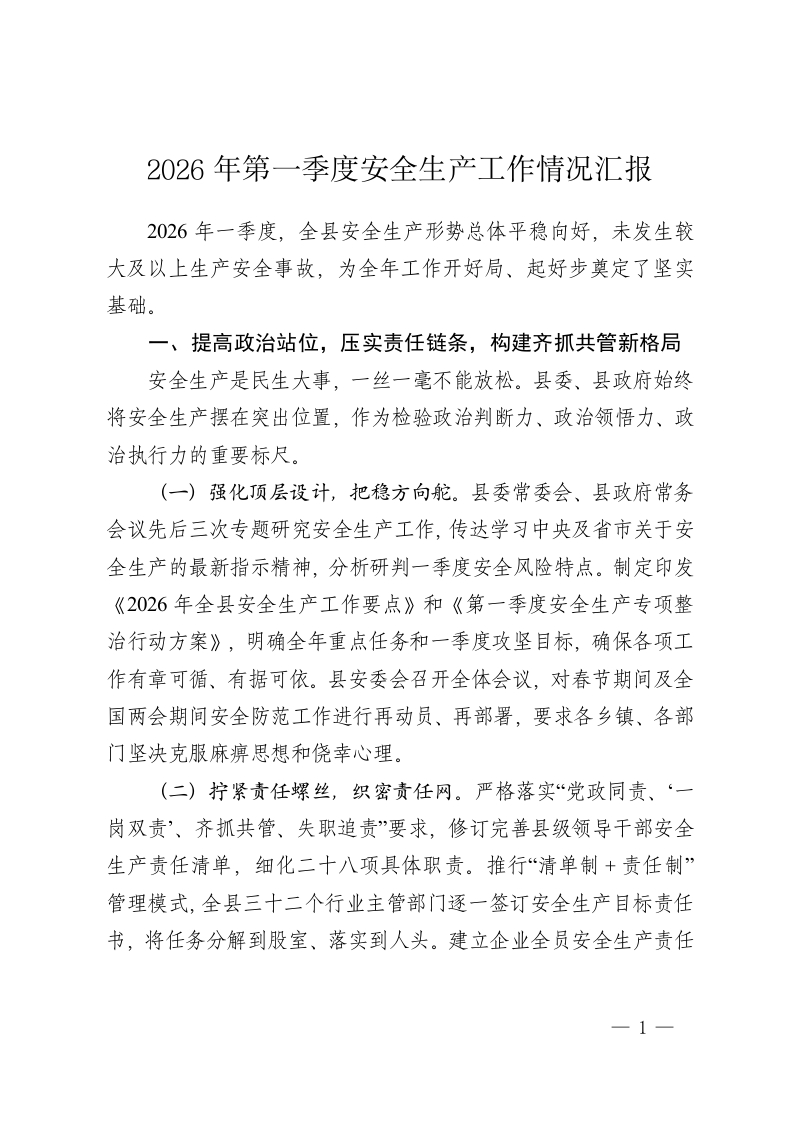 首页公文大全工作汇报2026年第一季度安全生产工作情况汇报