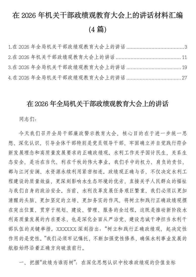 (4篇)在2026年政绩观教育大会上的讲话材料汇编