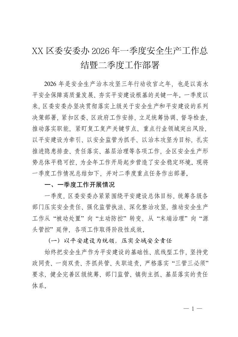 XX 区委安委办2026年一季度安全生产工作总结暨二季度工作部署