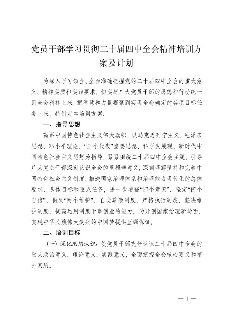党员干部学习贯彻二十届四中全会精神培训方案及计划