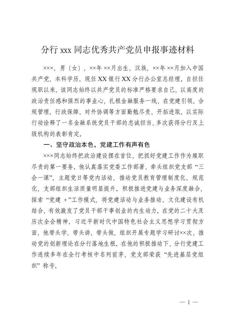 首页公文大全先进事迹分行xxx同志优秀共产党员申报事迹材料