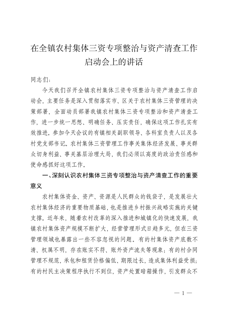 在全镇农村集体三资专项整治与资产清查工作启动会上的讲话