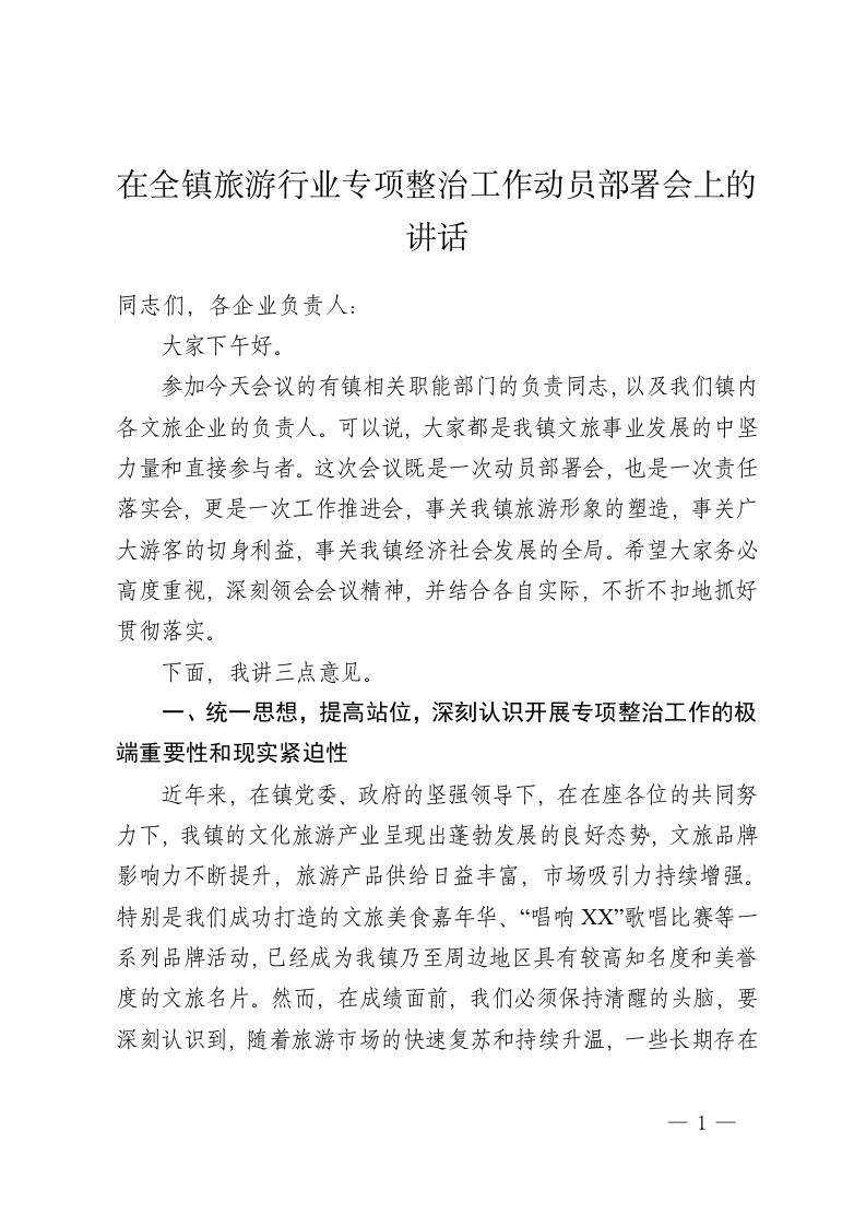 在全镇旅游行业专项整治工作动员部署会上的讲话