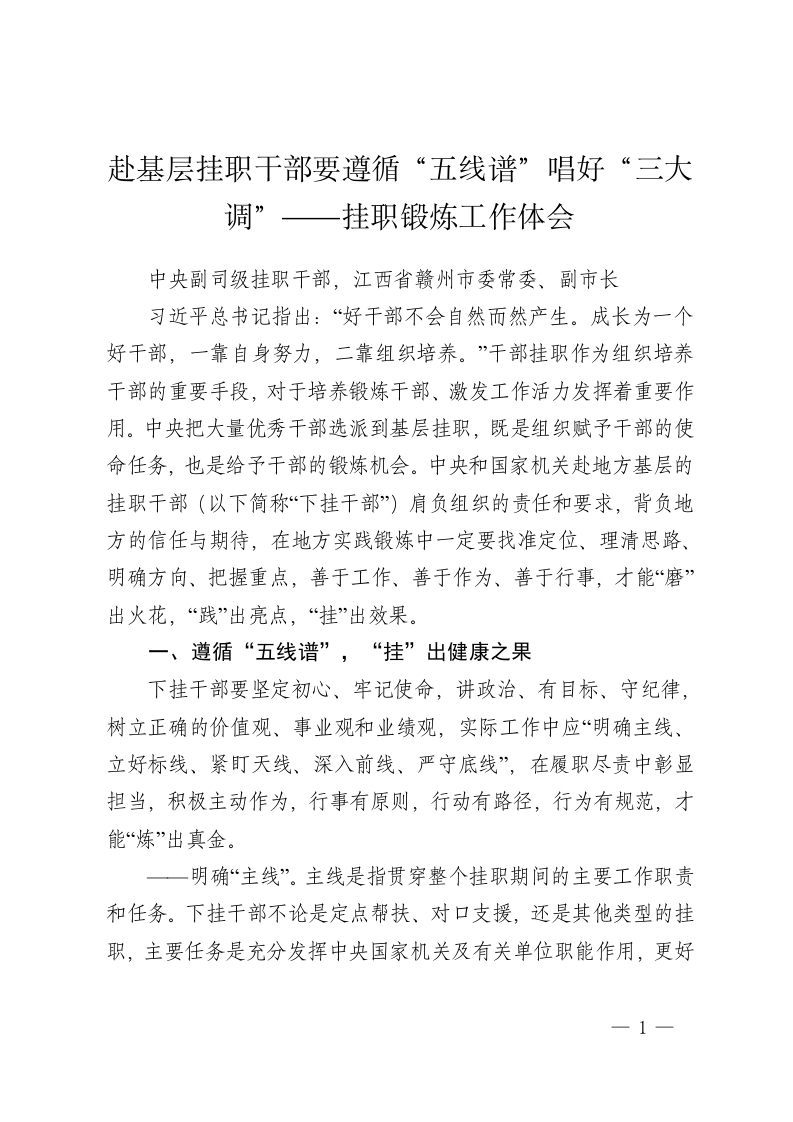首页公文大全心得体会赴基层挂职干部要遵循“五线谱”唱好“三大调”——挂职锻炼工作体会
