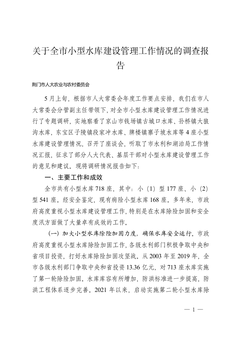 首页公文大全工作汇报关于全市小型水库建设管理工作情况的调查报告