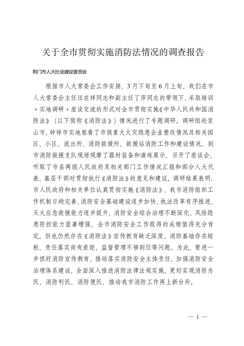 关于全市贯彻实施消防法情况的调查报告