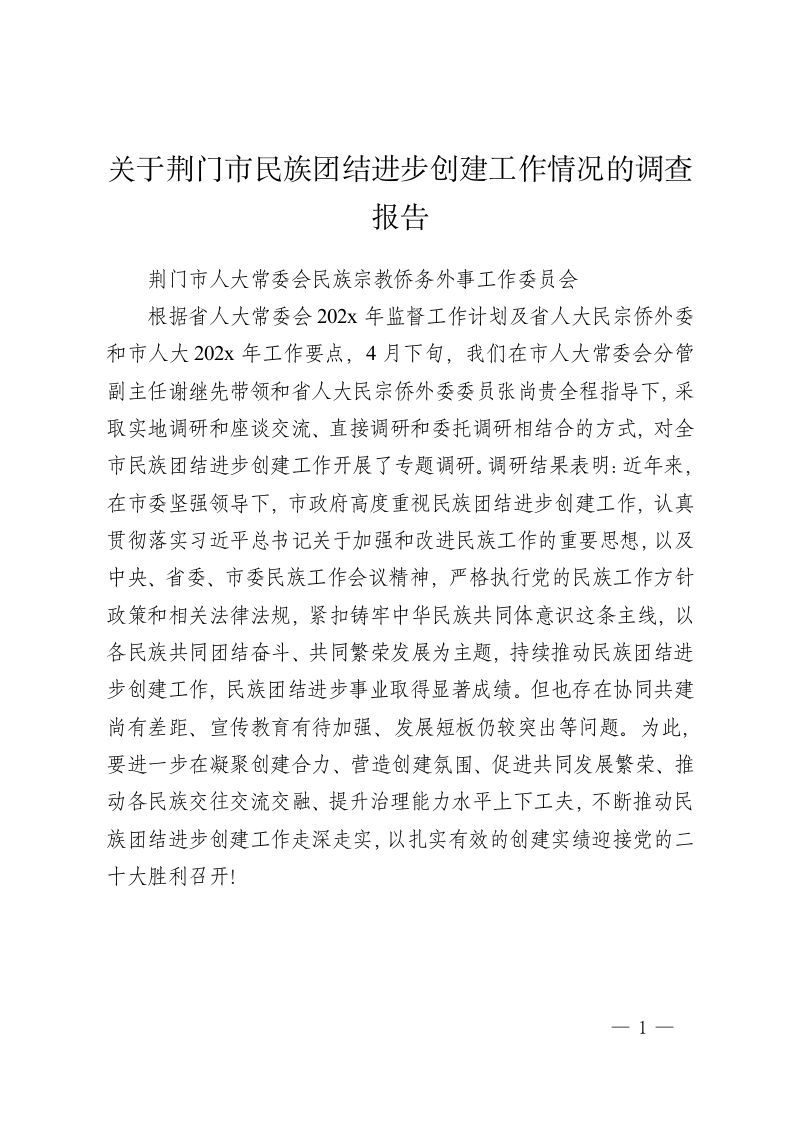 首页公文大全工作汇报关于荆门市民族团结进步创建工作情况的调查报告