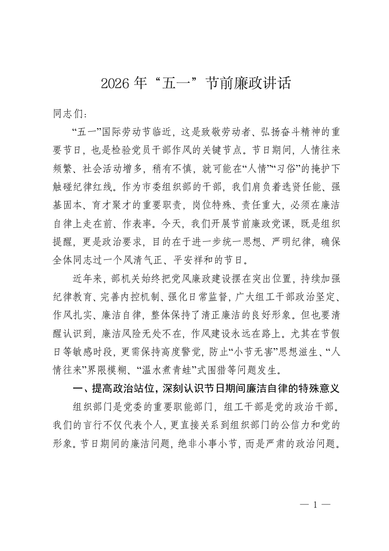 首页公文大全讲话发言2026年“五一”节前廉政讲话
