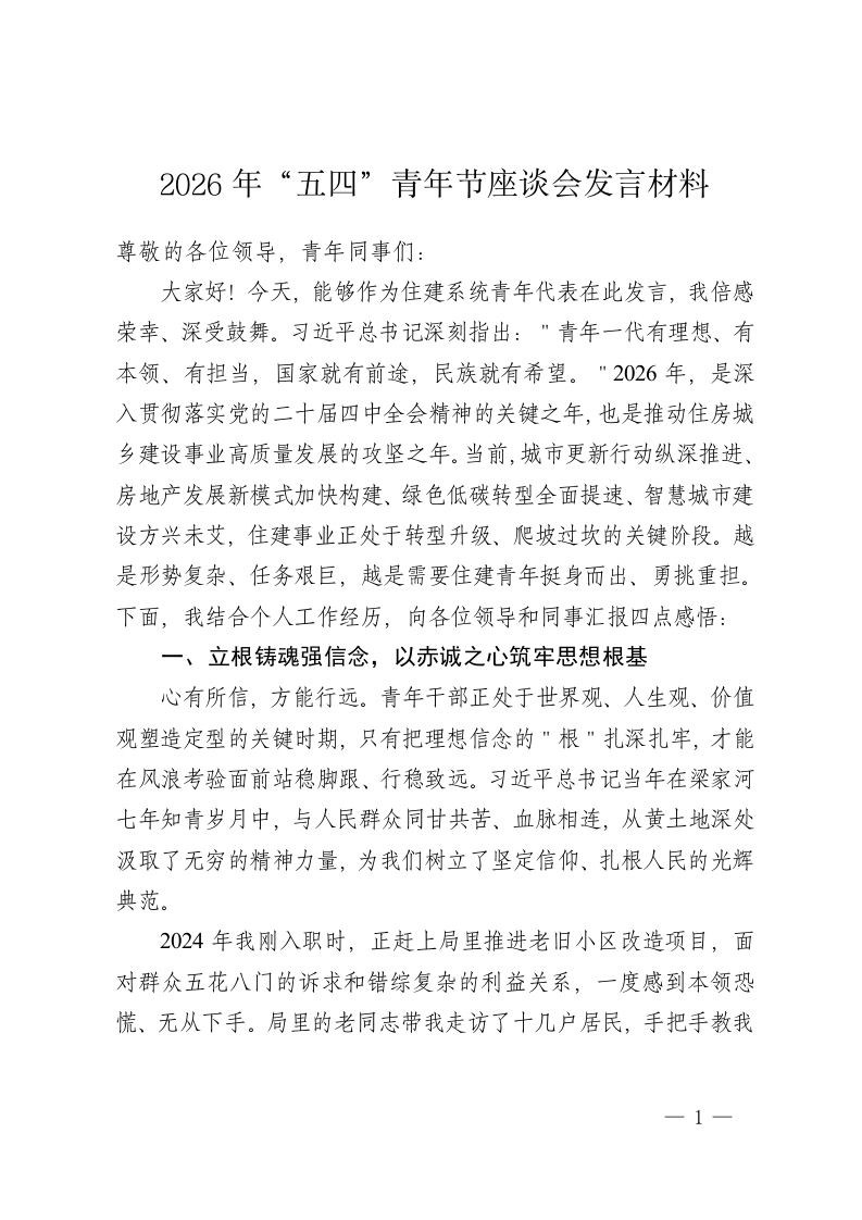 首页公文大全讲话发言2026年“五四”青年节座谈会发言材料