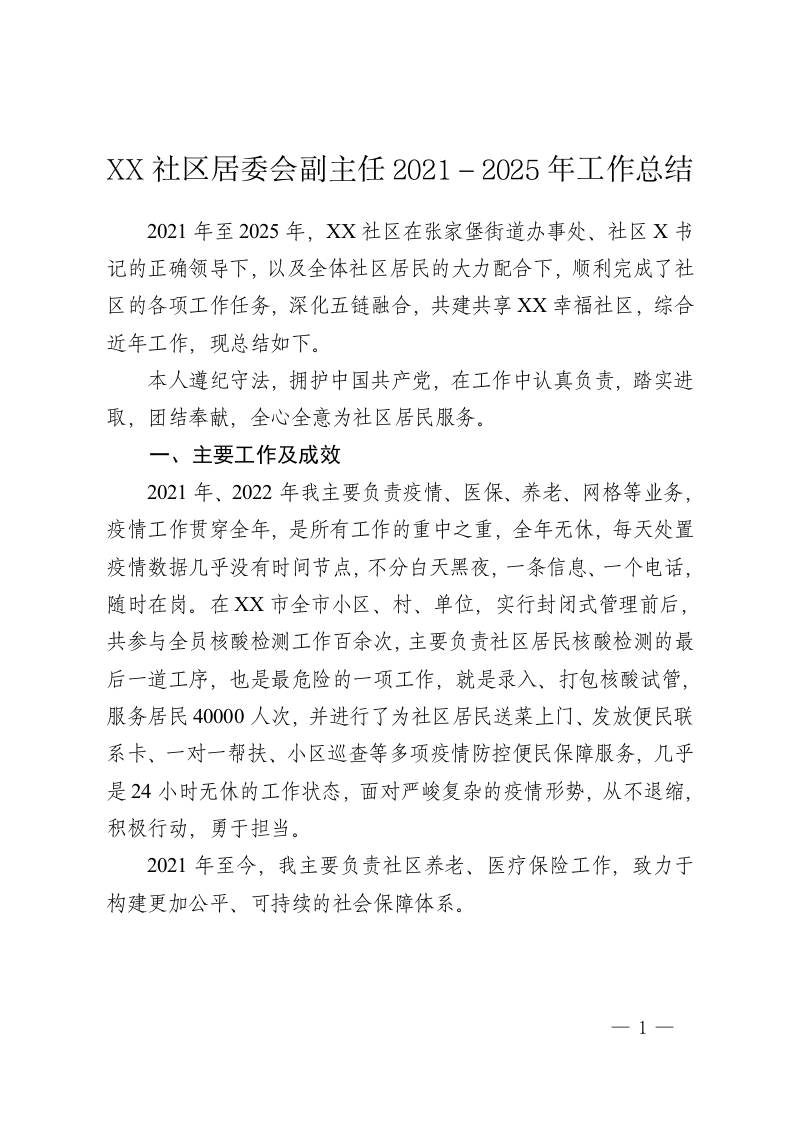 首页公文大全总结报告XX 社区居委会副主任2021-2025 年工作总结