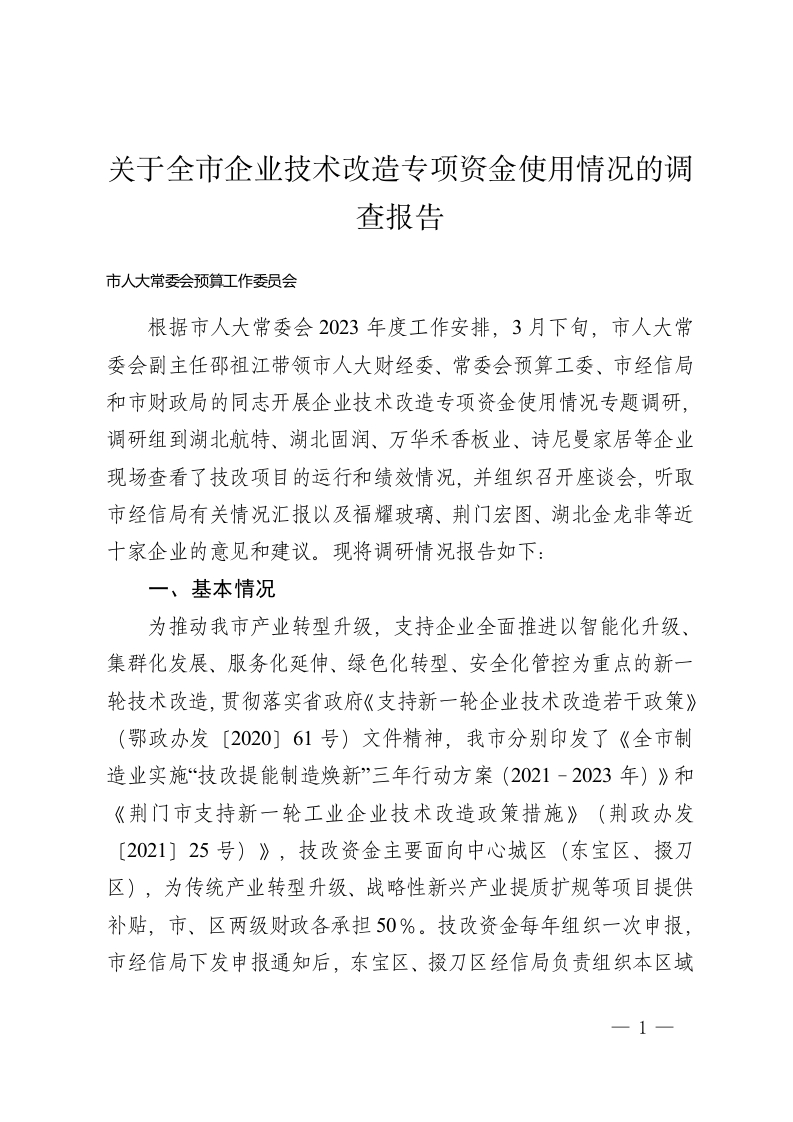 首页公文大全工作汇报关于全市企业技术改造专项资金使用情况的调查报告