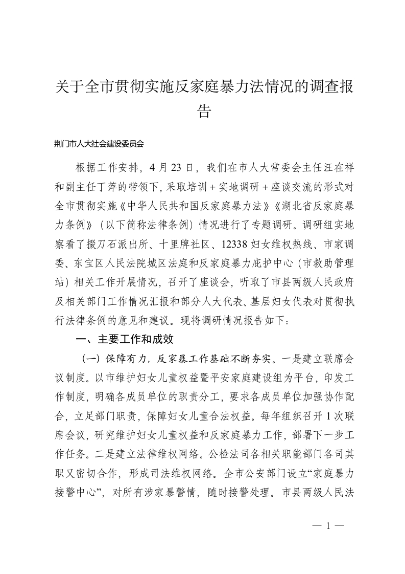 关于全市贯彻实施反家庭暴力法情况的调查报告