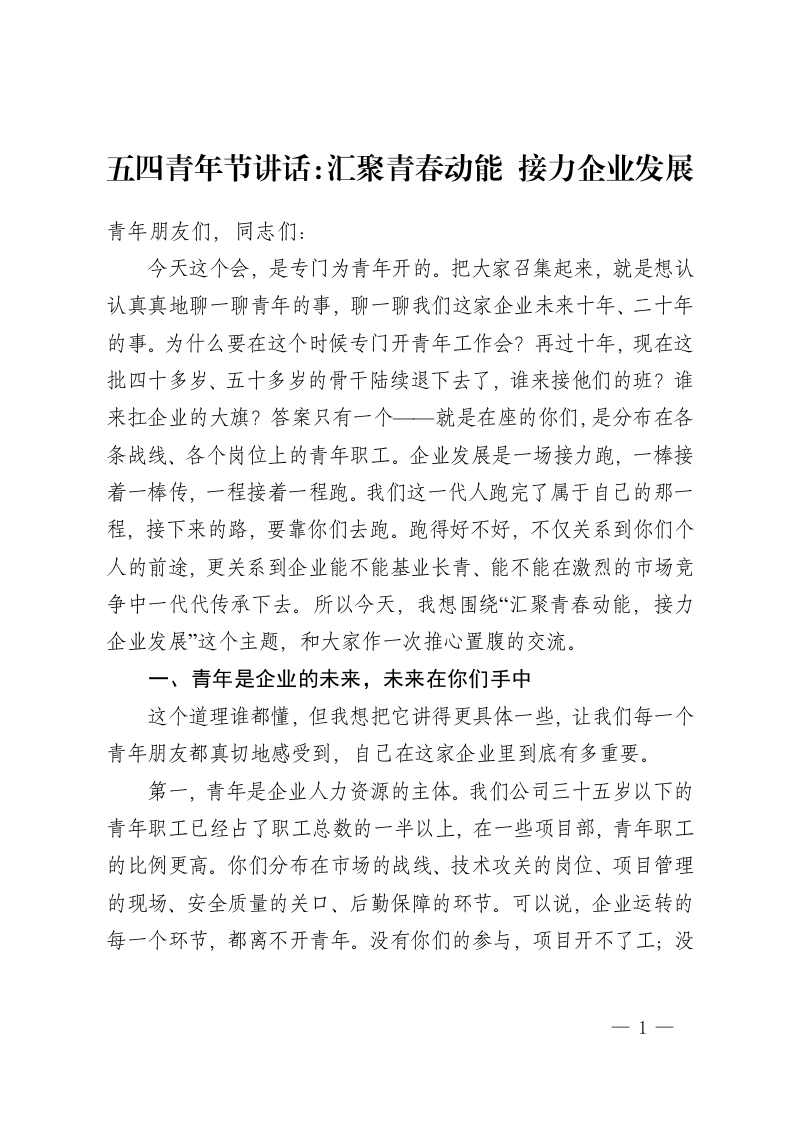 五四青年节讲话:汇聚青春动能 接力企业发展
