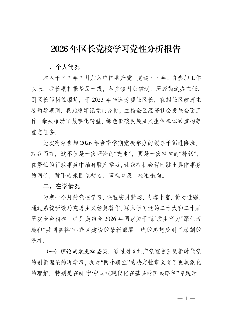 首页公文大全工作汇报2026年区长党校学习党性分析报告