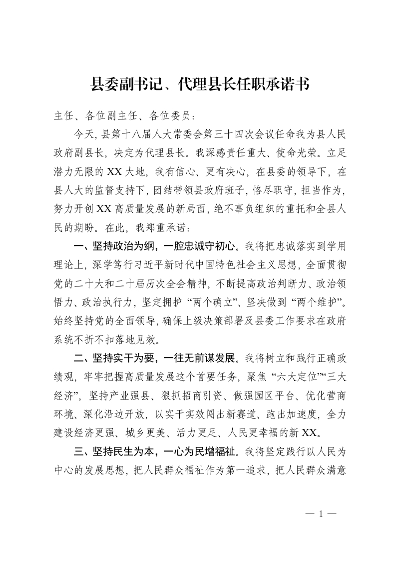 首页公文大全工作汇报县委副书记、代理县长任职承诺书