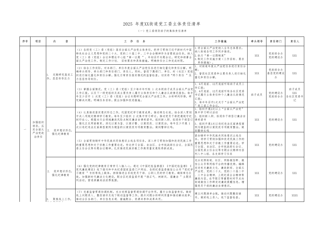 首页公文大全工作汇报(集体责任)2025年度全面从严治党“两个责任”任务清单