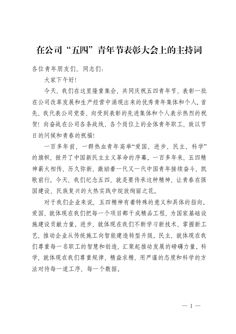 首页公文大全讲话发言在公司“五四”青年节表彰大会上的主持词