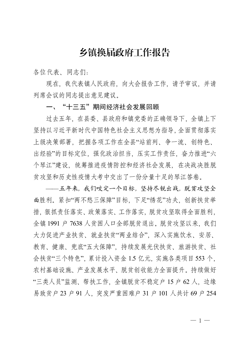 乡镇换届政府工作报告
