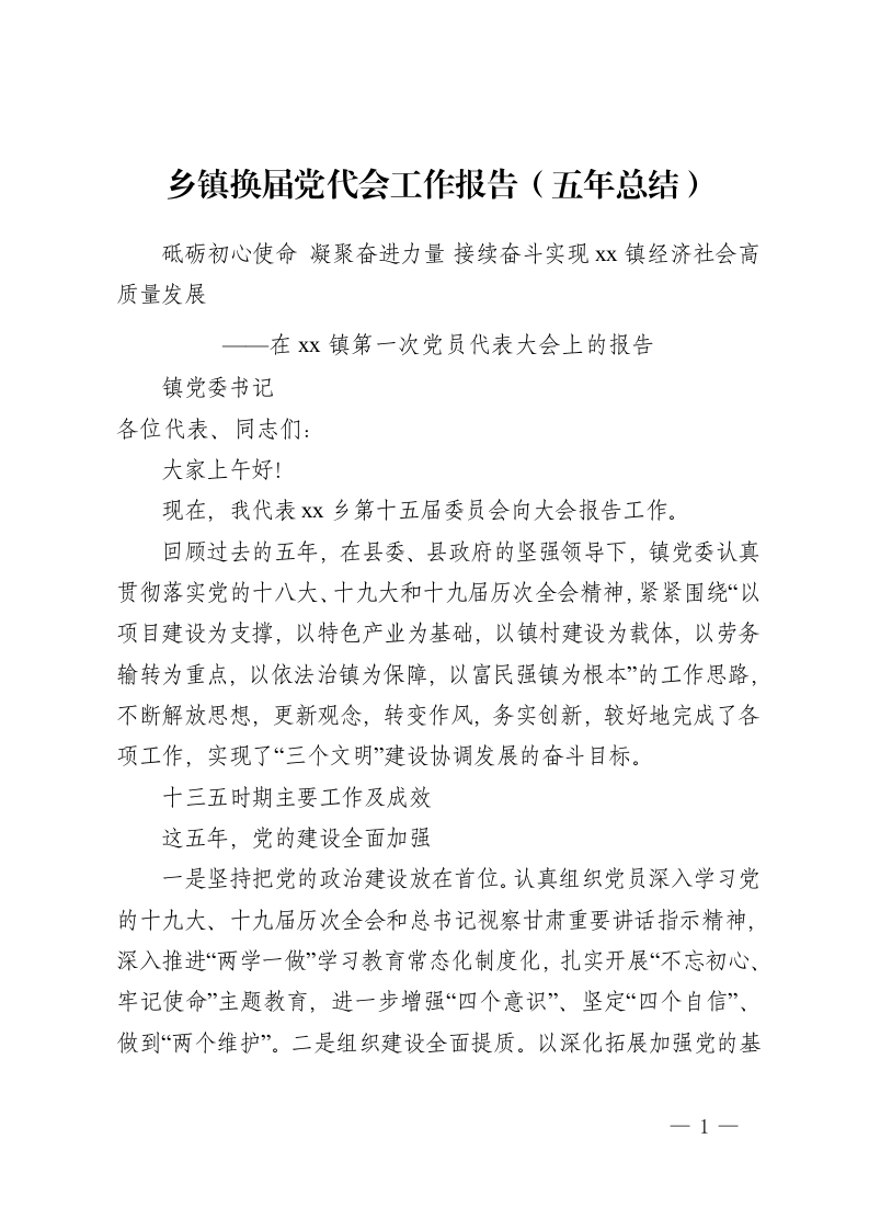 首页公文大全总结报告乡镇换届党代会工作报告(五年总结)