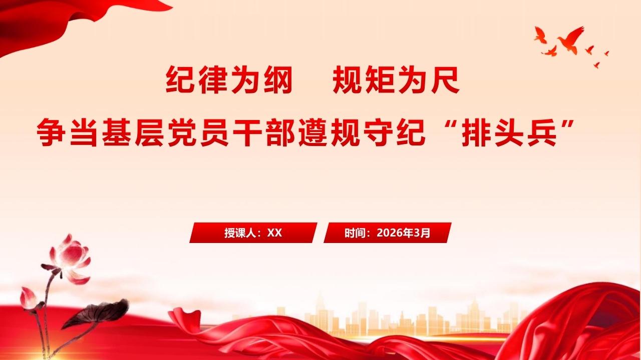 PPT:纪律为纲 规矩为尺 争当基层党员干部遵规守纪 “排头兵”