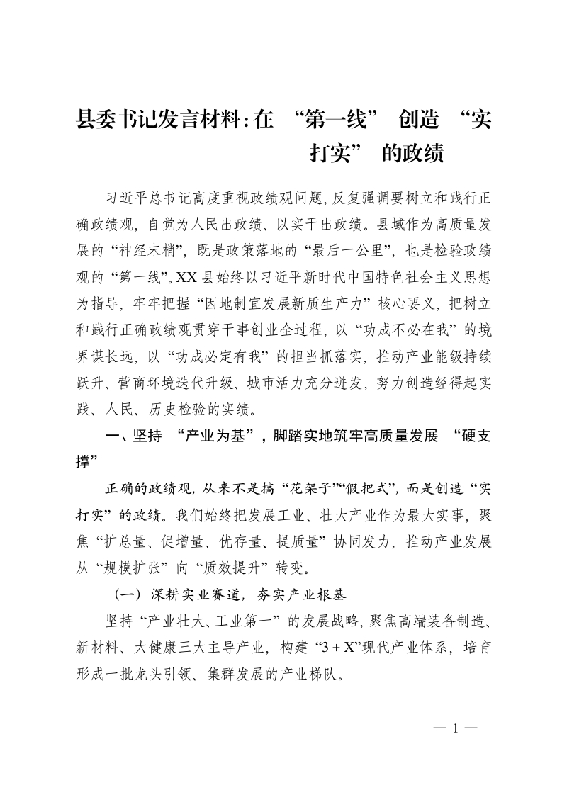 县委书记发言材料:在 “第一线” 创造 “实打实” 的政绩