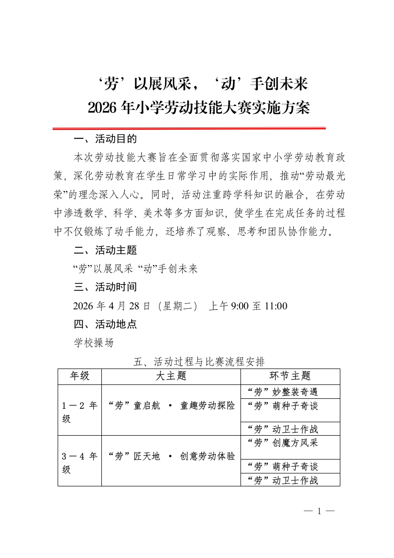 2026年五一劳动节“劳动技能大比拼”活动实施方案2