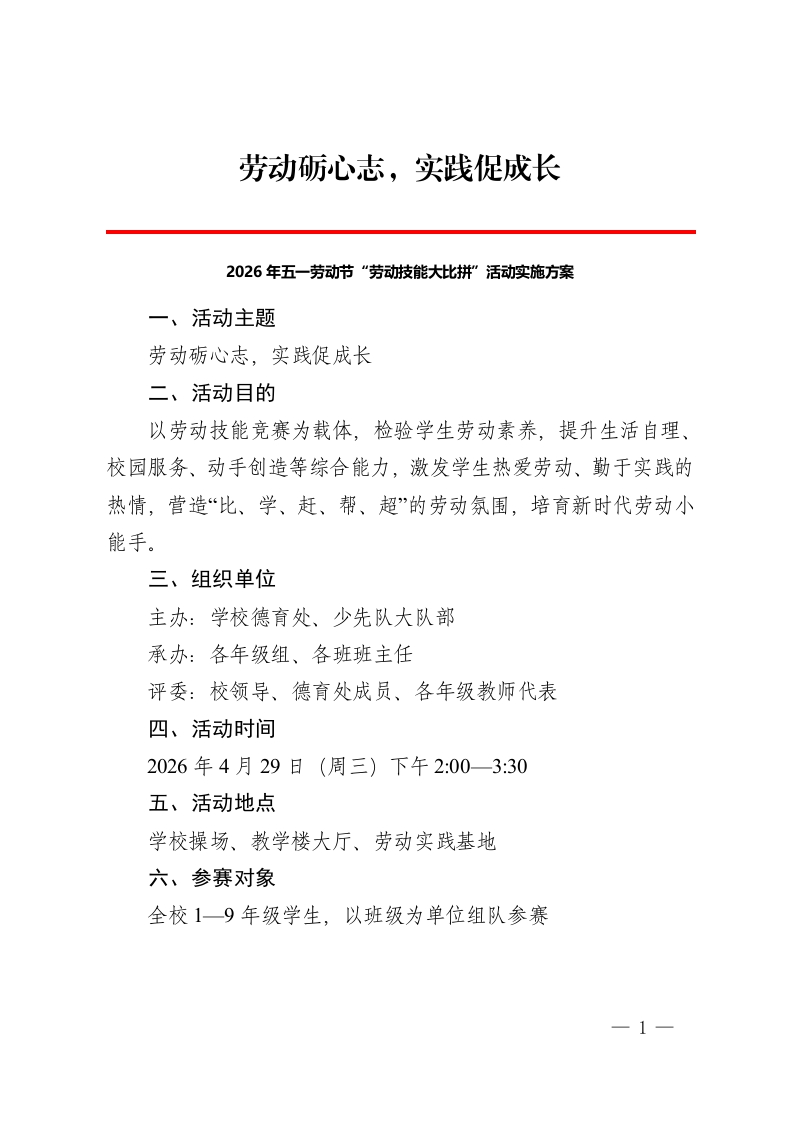 2026年五一劳动节“劳动技能大比拼”活动实施方案