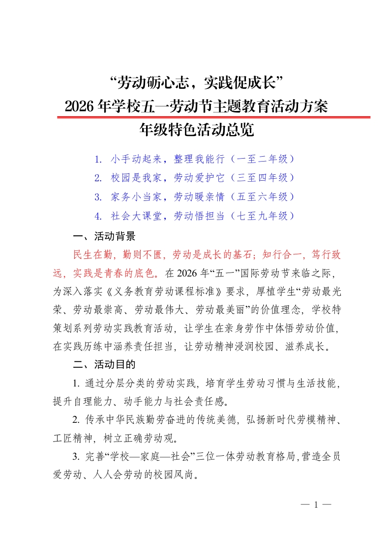 首页公文大全计划方案2026年学校五一劳动节主题教育活动方案