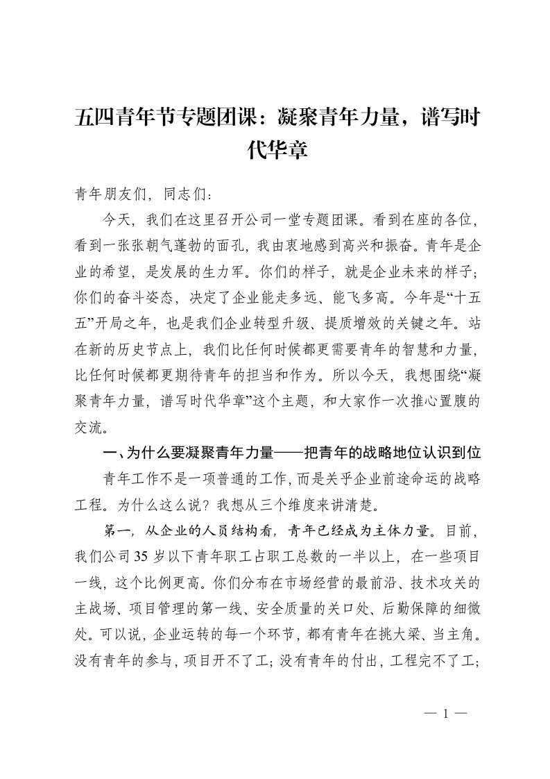 首页公文大全党课讲稿 五四青年节专题团课:凝聚青年力量,谱写时代华章