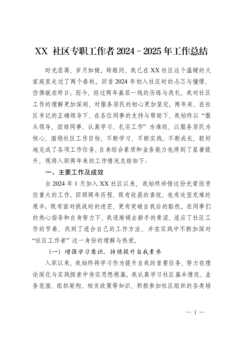 XX 社区专职工作者2024-2025 年工作总结