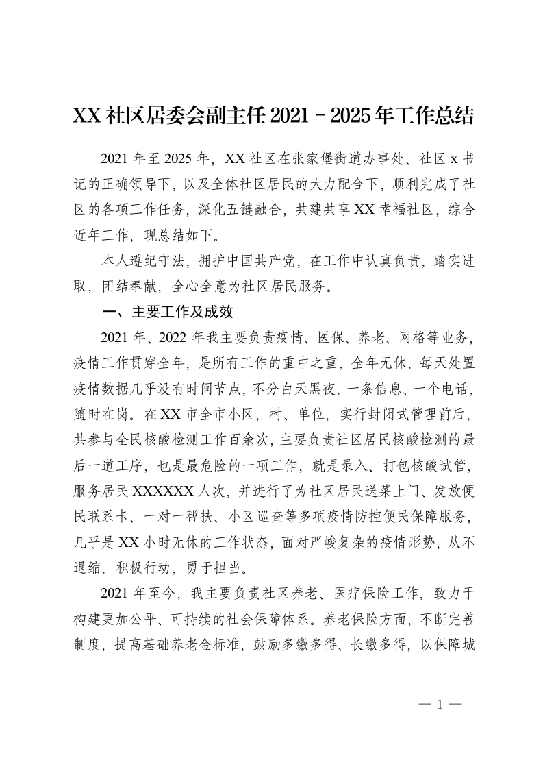 首页公文大全总结报告XX社区居委会副主任2021-2025年工作总结