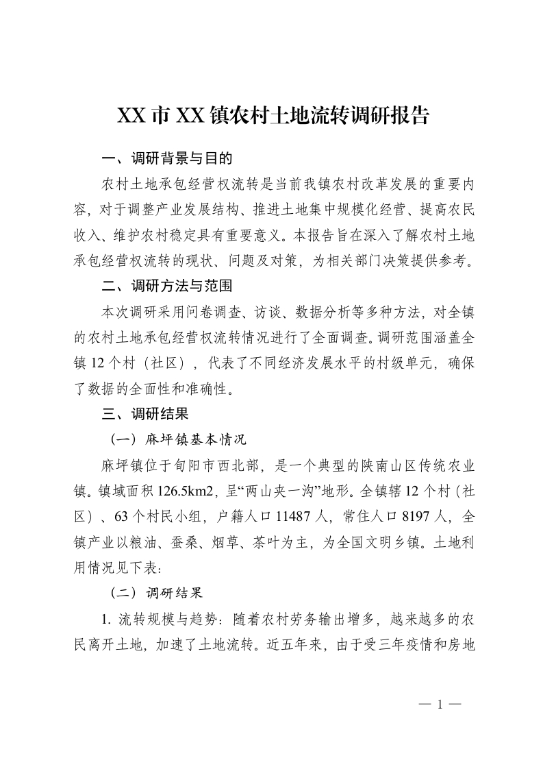 XX市XX镇农村土地流转调研报告